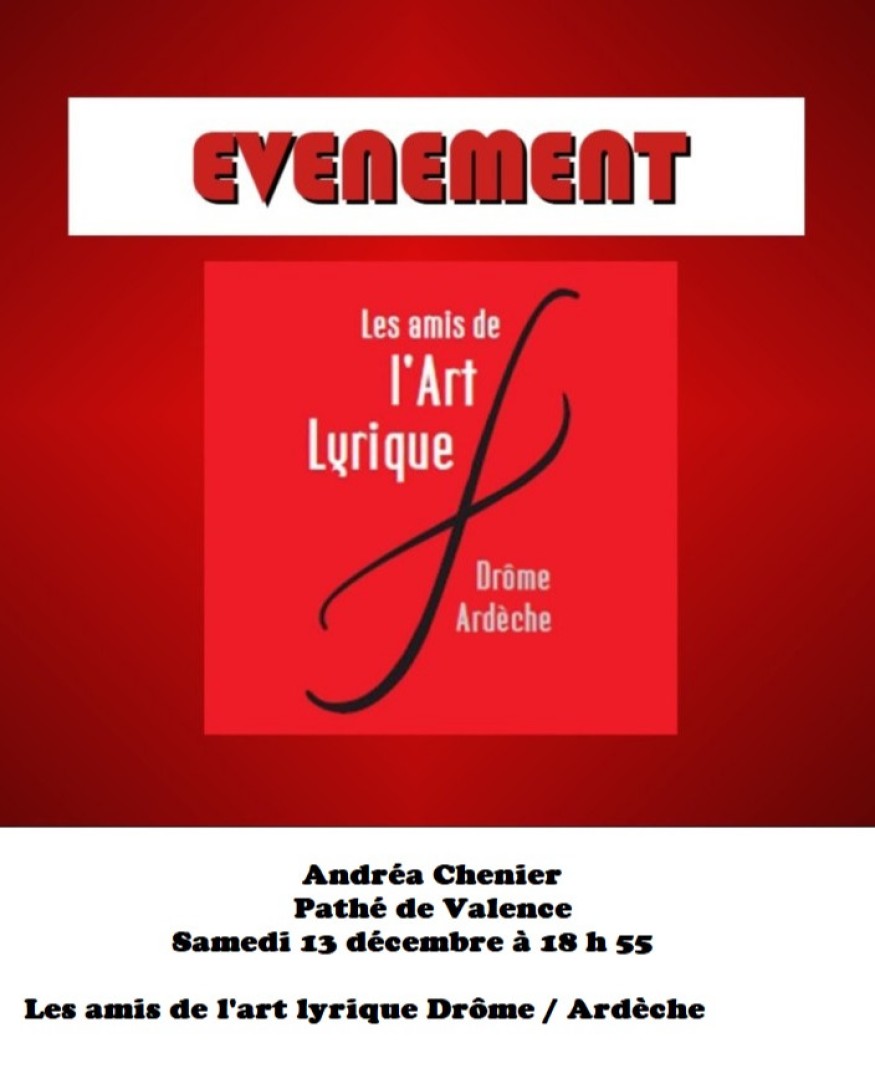 Avec les amis de l'art lyrique, partez découvrir à l'une retransmission au cinéma le Pathé à Valence de l'opéra Andréa Chenier le samedi 13 décembre à 18 h 55.