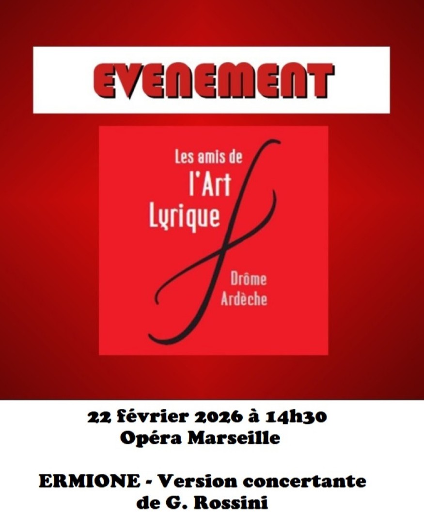 Avec les amis de l'art lyrique, partez découvrir à l'opéra : ERMIONE - Version concertante de G. Rossini le dimanche 22 février à 14h30 à l'opéra de Marseille