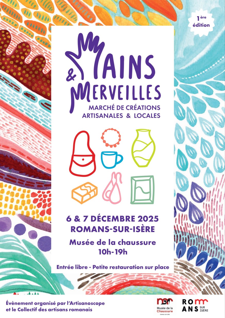 L'Artisanoscope, boutiques de créations locales et artisanales à Valence et Romans organise son premier marché au musée de la chaussure à Romans-sur-Isère le week-end du 06 et 07 décembre de 10 h à 19 h.