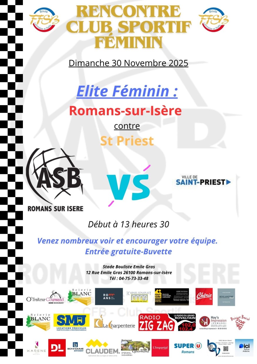 Rencontre Club Sportif Féminin de Boulles le dimanche 30 novembre à partir de 13 h 30 au stade Bouliste Emile Gras à Romans sur Isère opposant en :