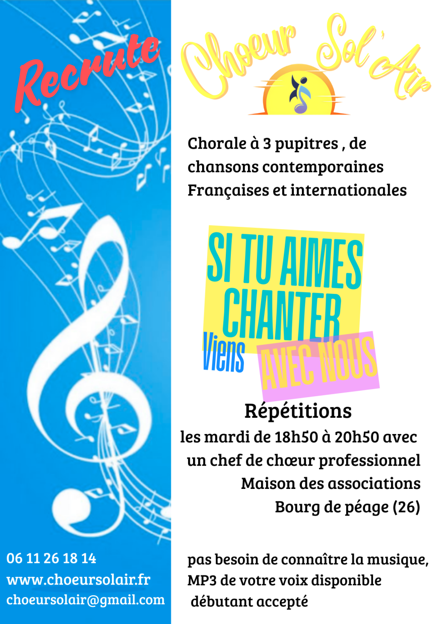 Reprise des répétitions de la chorale : Chœur Sol'Air