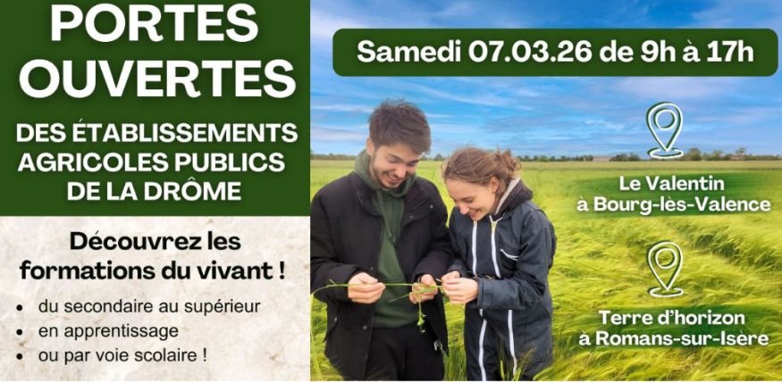 Les lycées agricoles publics de la Drôme, Terre d’horizon à Romans-sur-Isère et Le Valentin à Bourg-lès-Valence, invitent le grand public à leurs Journées Portes
